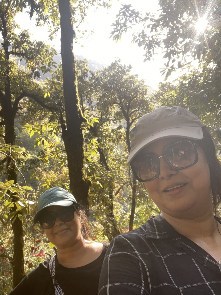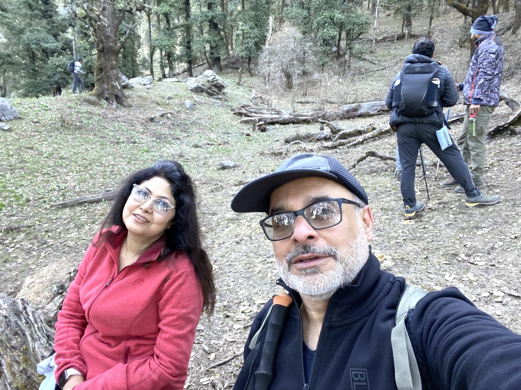 The guidelines were too steep to execute but we were managing with the focus of making it to the summit. Well, in the mean time Saibal developed ankle pain (started with uric acid medication, crepe bandage without much help) and Smita developed knee pain. But we all were determined to go ahead. Bapi has both degenerative knees. Sajal uses anti-snoring device which is bulky to carry. Considering our challenges, we planned to take a day off in Mussoorie the day before trek to acclimatise and rest but we ended up walking through the Mussoorie trails, Landour and Kempty falls..We had gone back to our younger college days!!!
